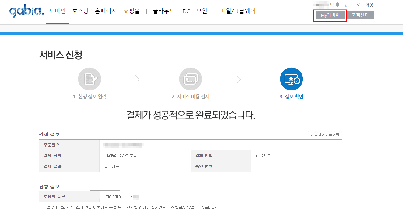 결제가 성공적으로 완료 되었다면, 결제 정보 및 신청 정보를 확인 해주세요.