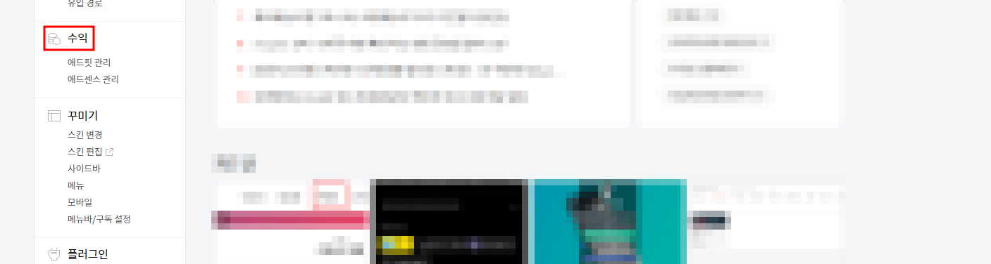 티스토리 카테고리 수익을 눌러 애드센스 연동을 눌러줍니다.