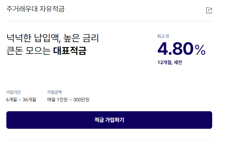 - 금리 4.20% (12개월), 최고 4.80% (12개월)