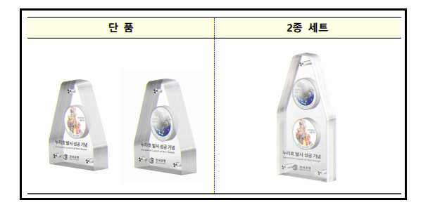 - 성공 기념 주화 수령 방법 : 예약접수 금융기관 지점 방문 직접수령 (접수증 및 신분증 소지) 또는 우편 배송 선택 가능