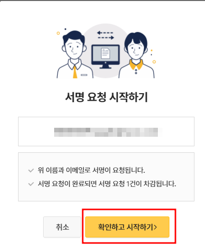 서명 시작하기를 누르면 이런 창이 뜰텐데 확인하고 시작하기 눌러줍니다.