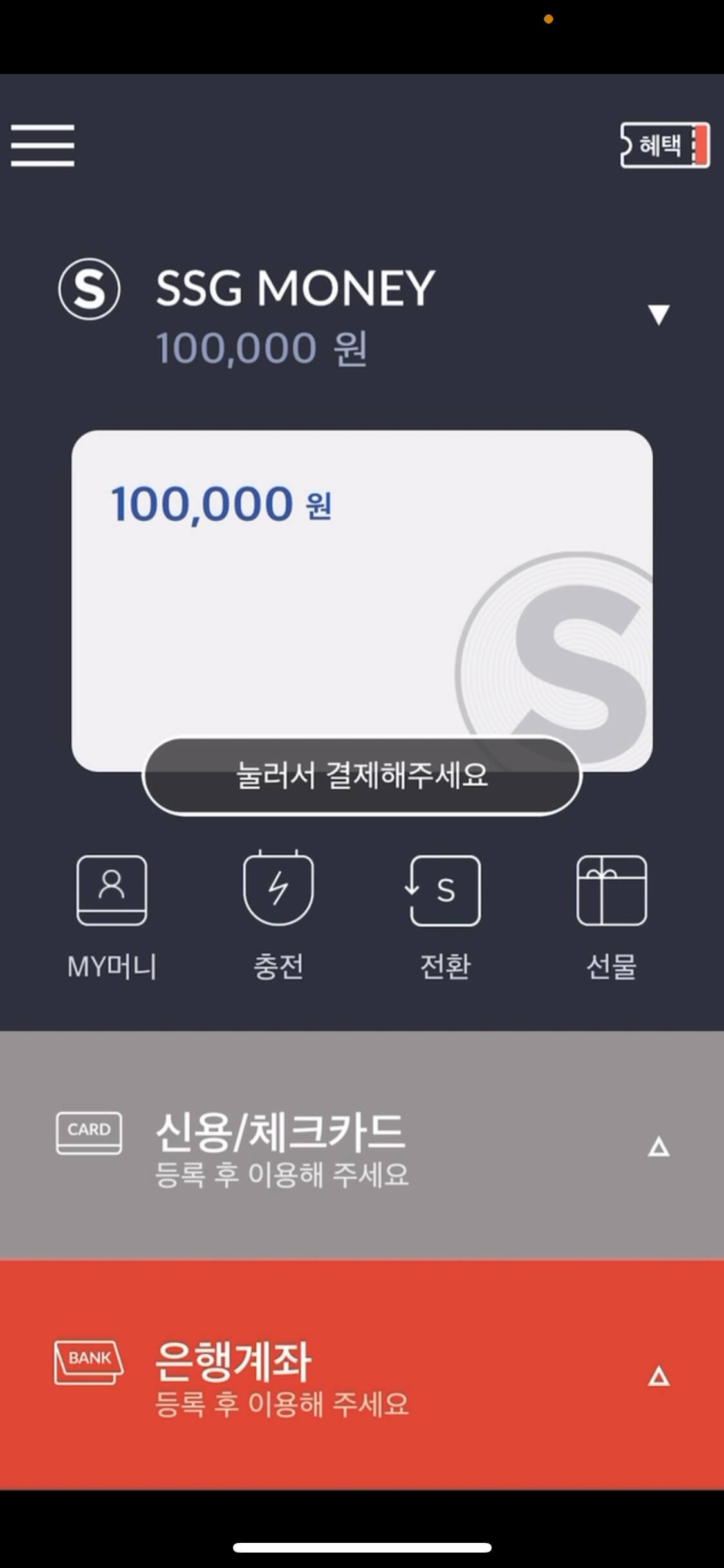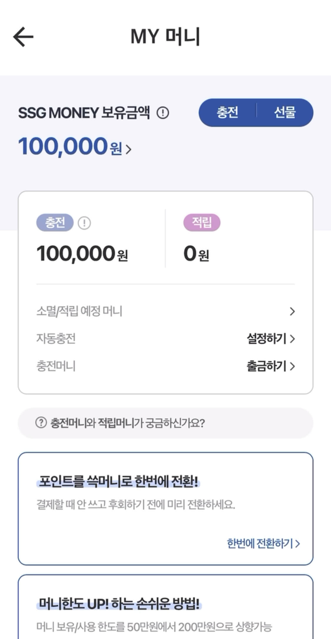 상품권을 SSG MONEY로 교환했다면 이제는 SSG MONEY 를 현금으로 바꿀 차례입니다.