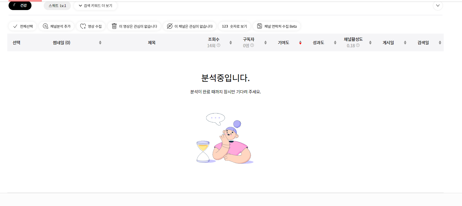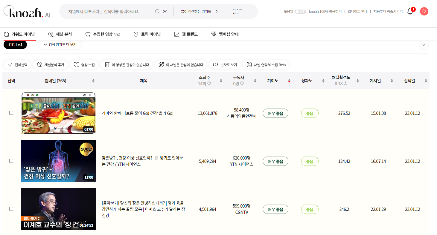 저는 건강 유튜브를 준비하고 있어서 건강으로 검색해 보겠습니다.