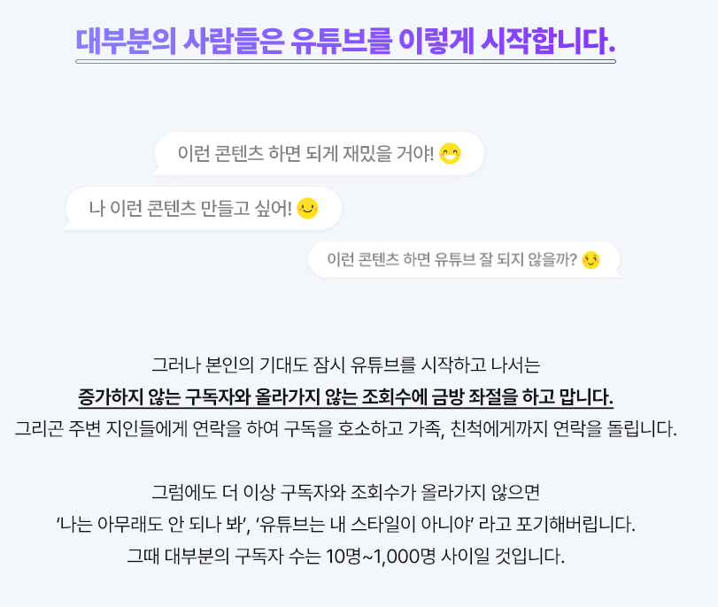 유튜브를 시작하고 나서 생각만큼 구독자와 조회수가 나오지 않습니다.