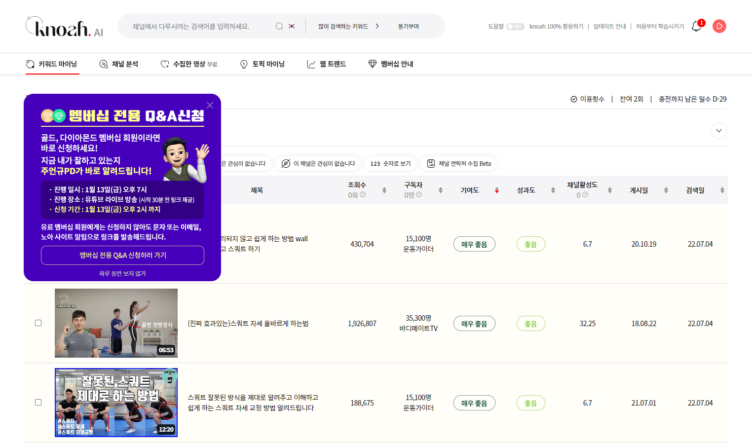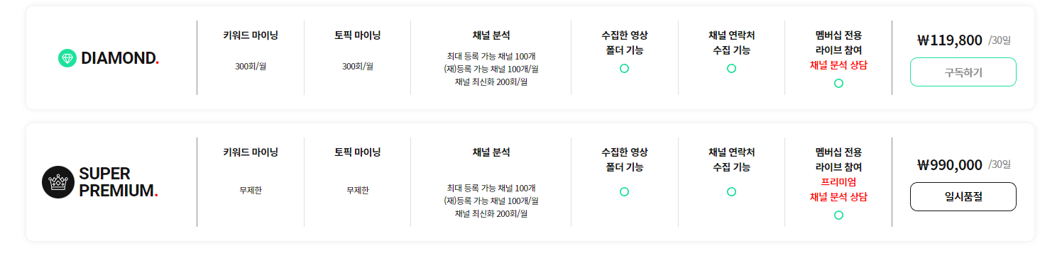 검색어는 무료로 이용시 2번까지 검색(키워드 마이닝)을 할 수 있습니다.
