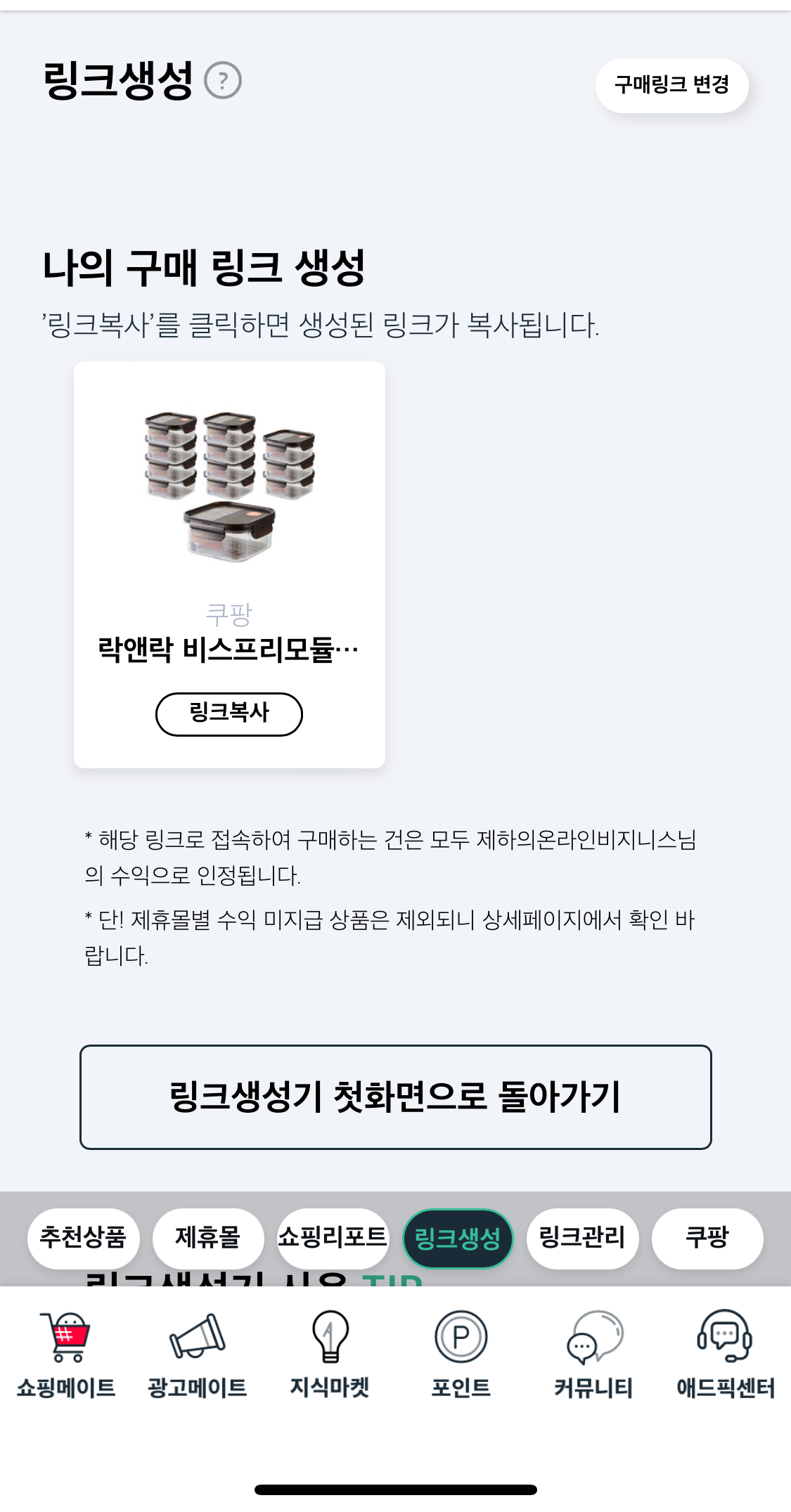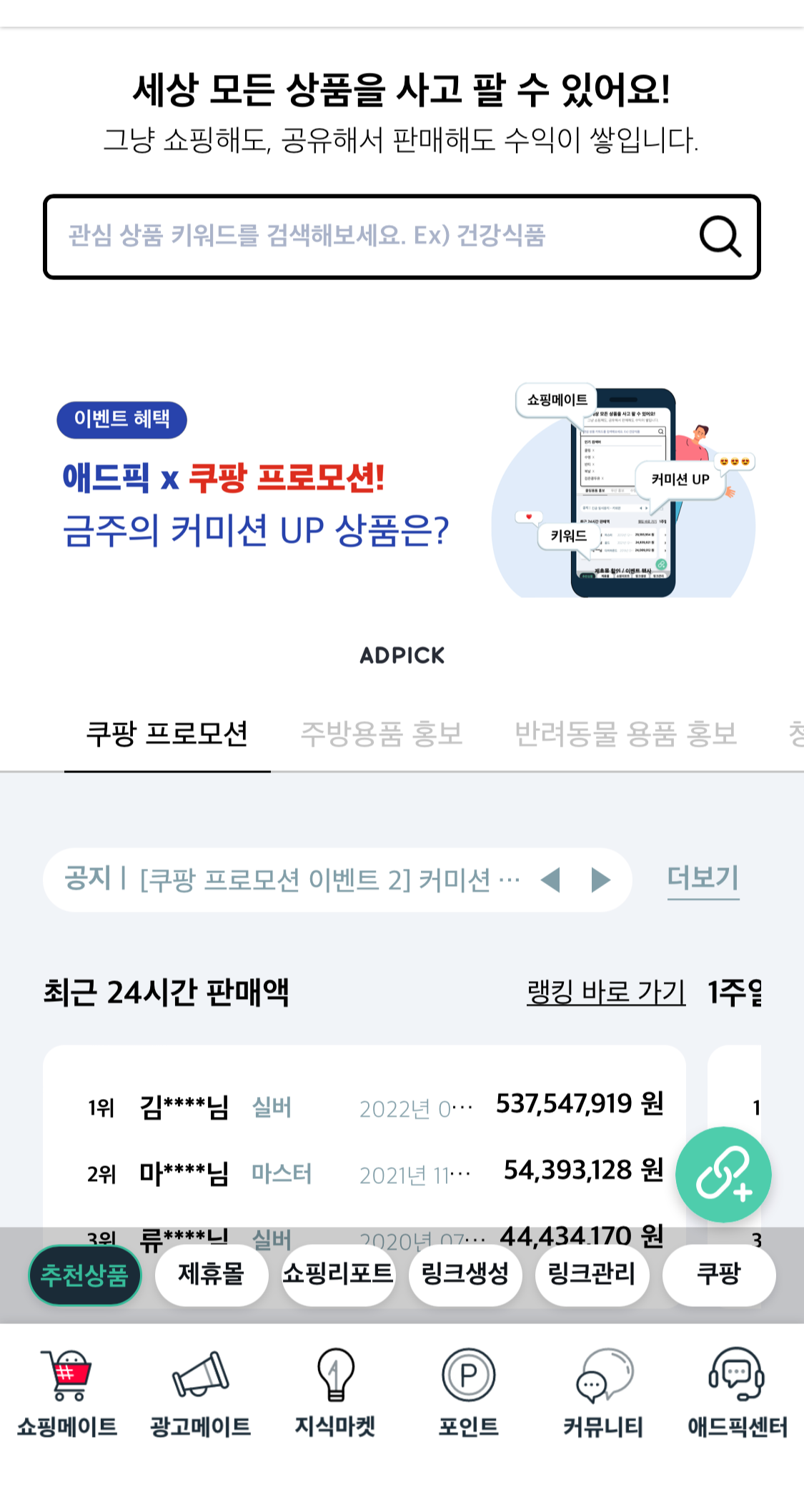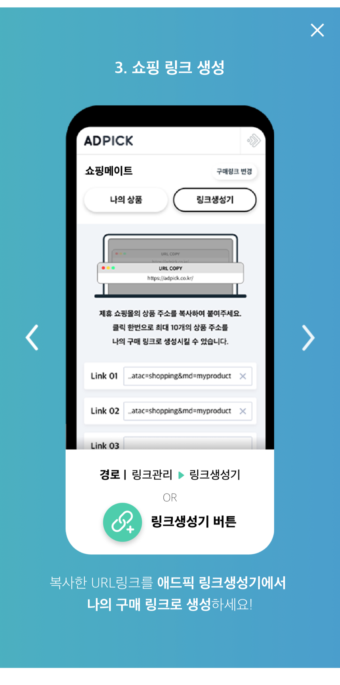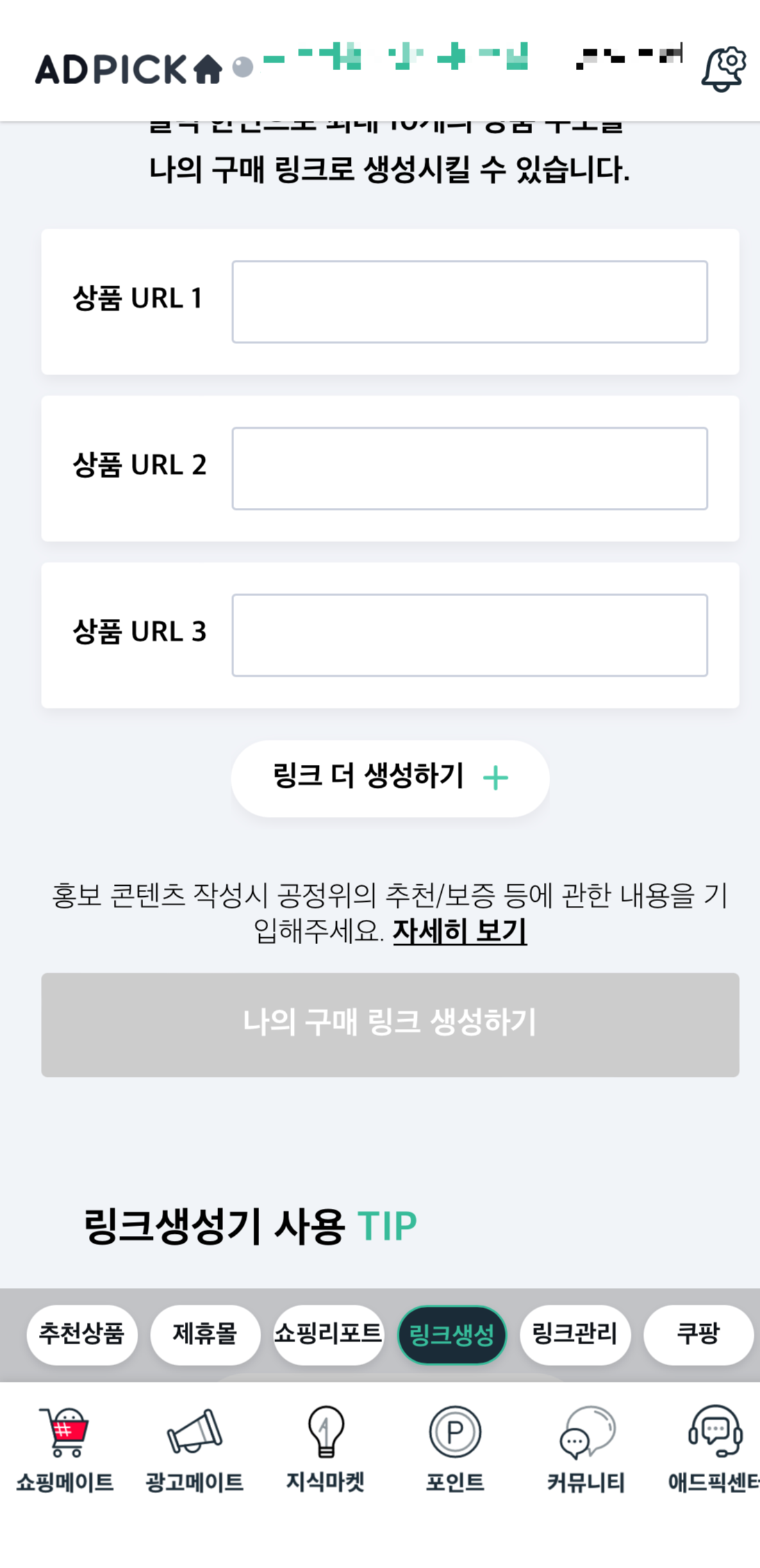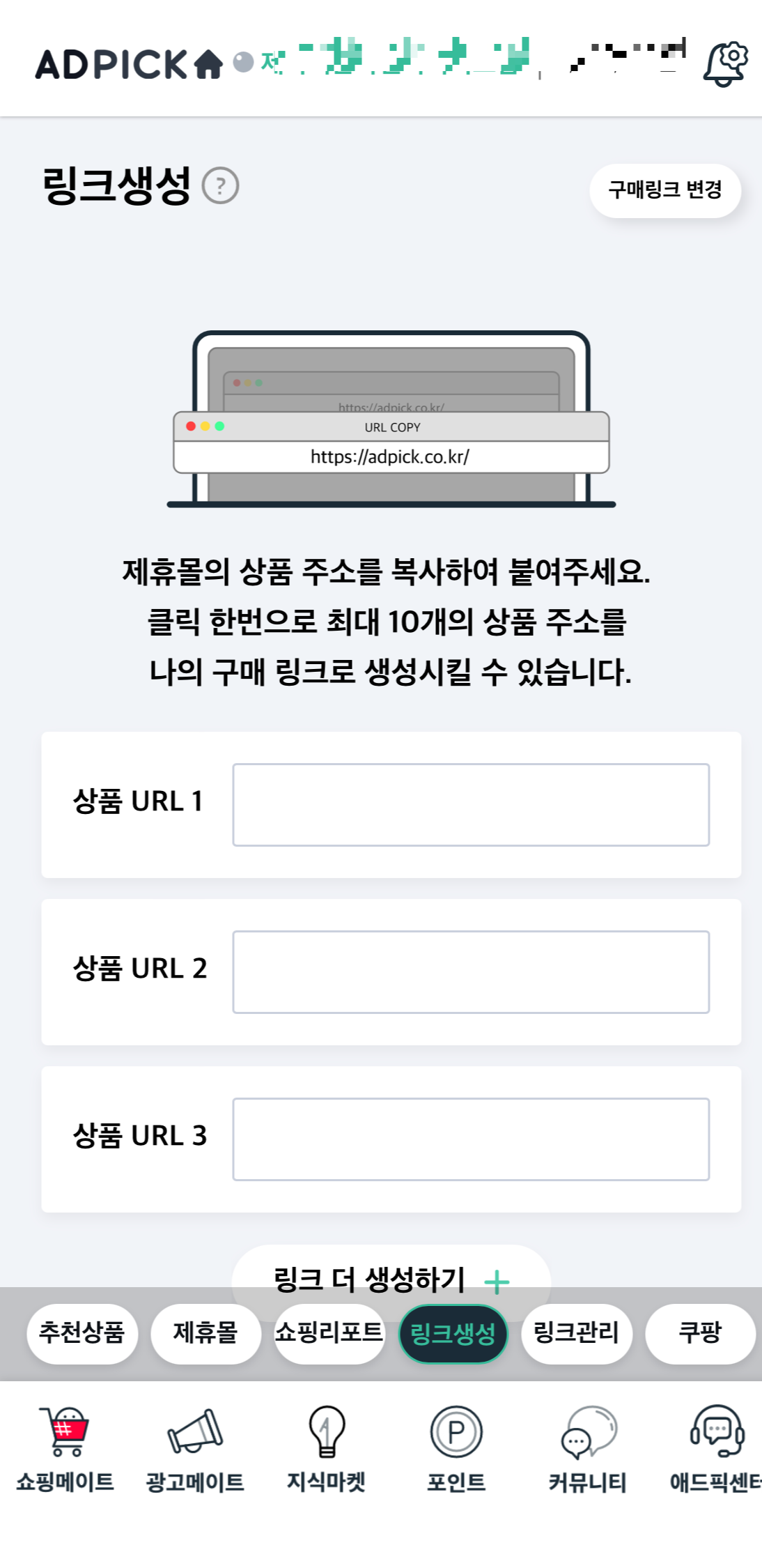 애드픽 홈 < 쇼핑메이트 < 링크생성