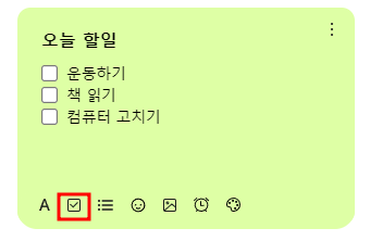 만약 내가 오늘 할일을 했다고 하면 체크박스에 체크를 해주면 우측 사진과 같이 체크 표시가 되면서