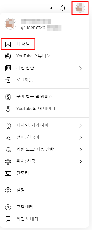 유튜브에 로그인 한 후 우측 프로필 사진을 눌러 내 채널로 들어가줍니다.