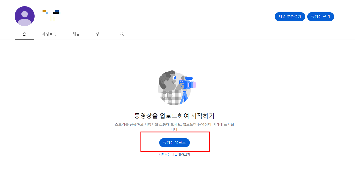 내 채널에 들어가면 동영상 업로드하여 시작하기