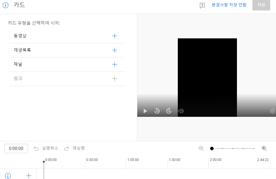 카드 추가란 동영상 재생 시 상단 부분에 관련 동영상을 글로 노출하는 부분을 얘기합니다.