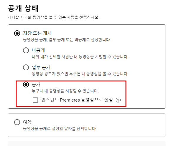 저는 공개를 해 누구나 내 동영상을 시청 할 수 있도록 하겠습니다.