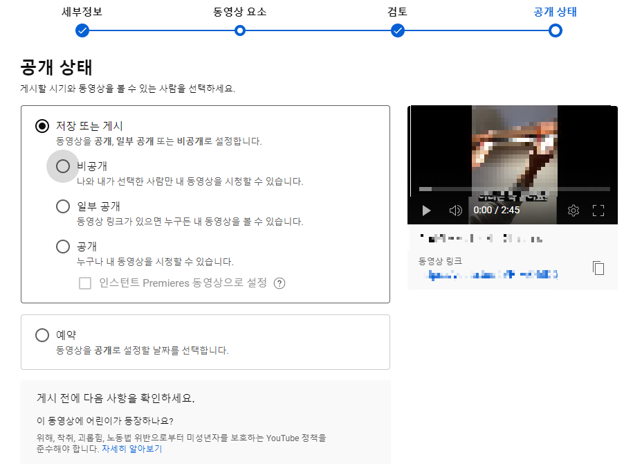 저는 공개를 해 누구나 내 동영상을 시청 할 수 있도록 하겠습니다.