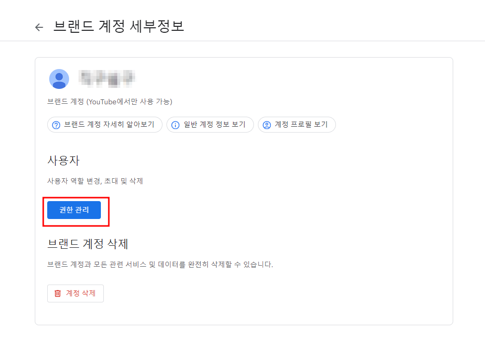 권한 관리를 클릭하게 되면 자동으로 브랜드 계정으로 전환됩니다.