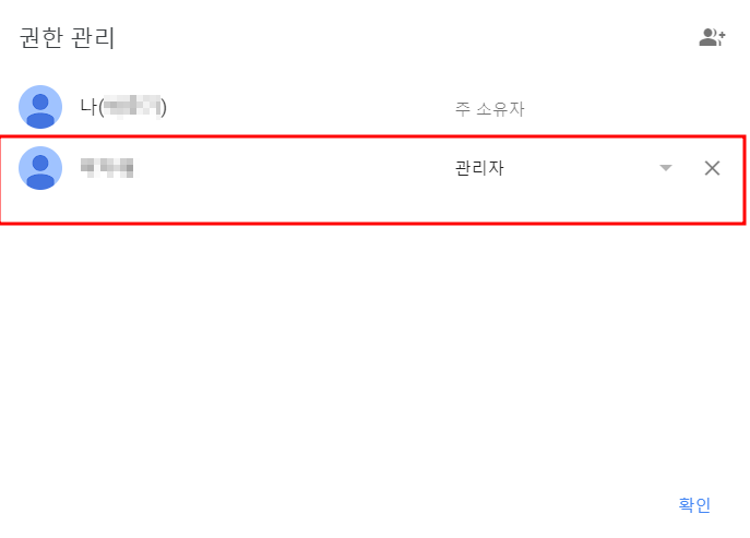 매니저 권한을 주게 되면 나 외에 다른 사람이 수정 및 편집을 할 수 있게 권한이 생깁니다.