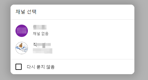 어떤 채널로 들어갈건지 팝업창이 뜹니다.