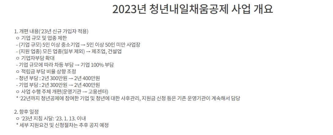 2022년 청년재직자 내일채움공제 에서 2023년은 청년재직자 내일채움공제 플러스로 개편되었습니다.