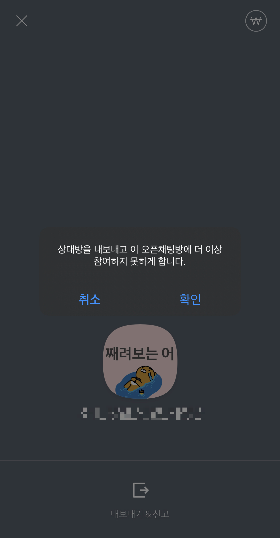 상대방을 내보내고 이 오픈채팅방에 더 이상 참여하지 못하게 합니다.