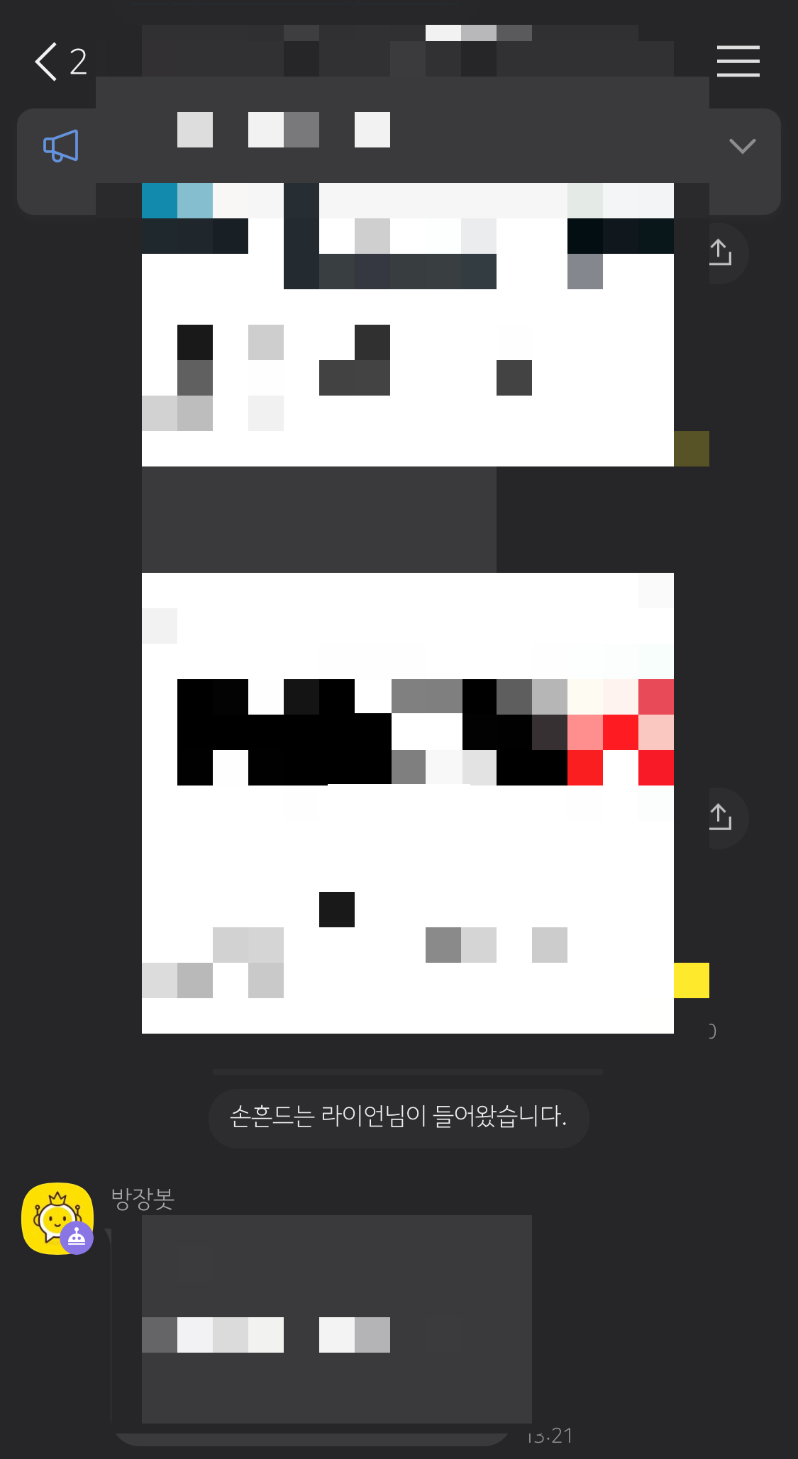 위와 같이 참여할 수 없는 채팅방입니다. 방장이나 부방장에 의해 내보내기 되었습니다.라는 안내창이 뜹니다.