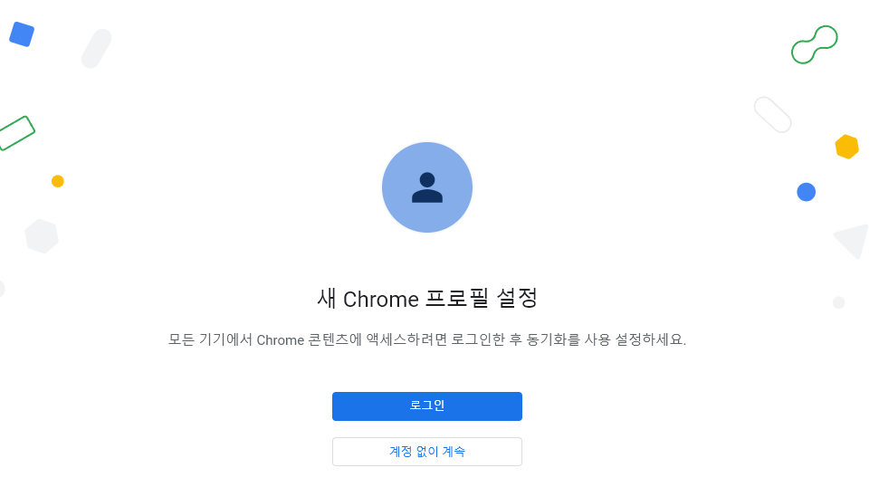 그럼 위와 같이 새 크롬 프로필 설정 로그인을 눌러줍니다.