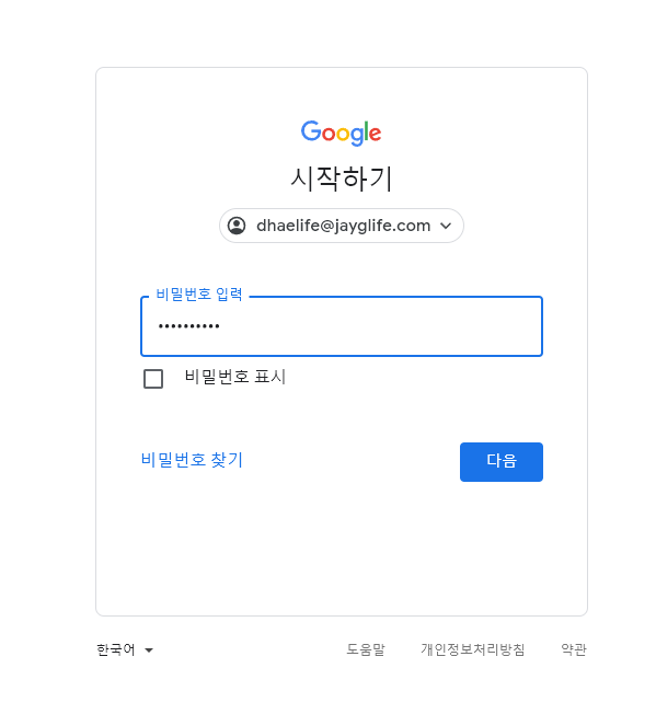 아이디와 비밀번호를 입력하고 다음을 눌러줍니다.