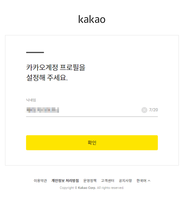 이번에는 카카오계정 프로필을 설정해주면 되는데