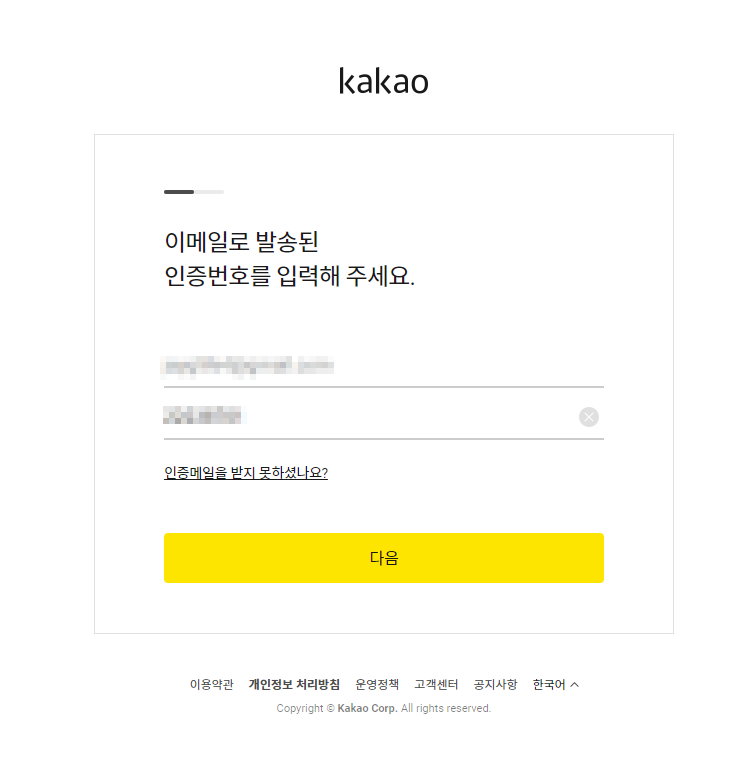 만약 카카오와 연계되어 있는 계정이 아니라면 추후