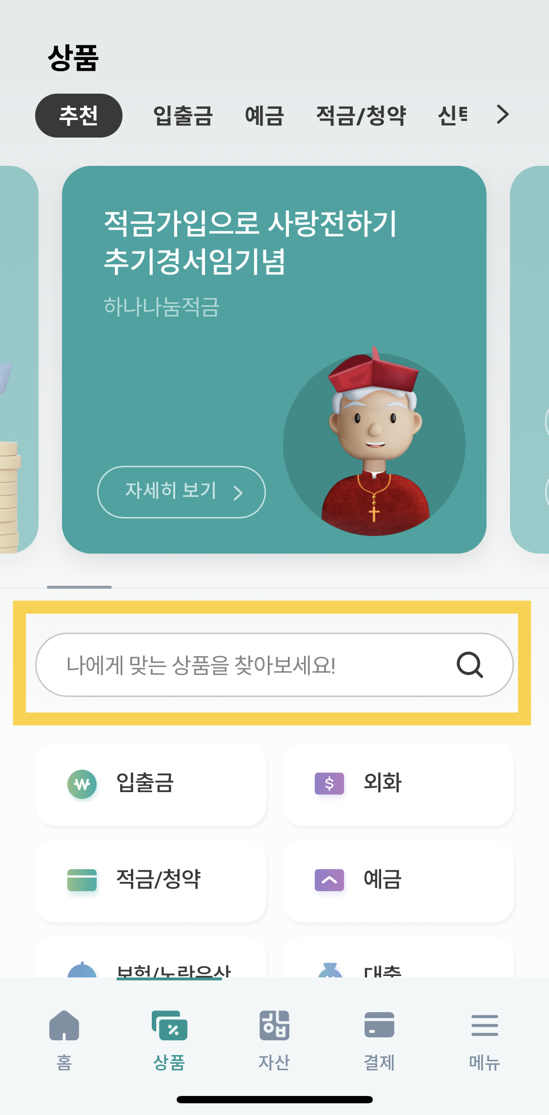 하나원큐 로그인 후 맨 하단 상품을 눌러줍니다.