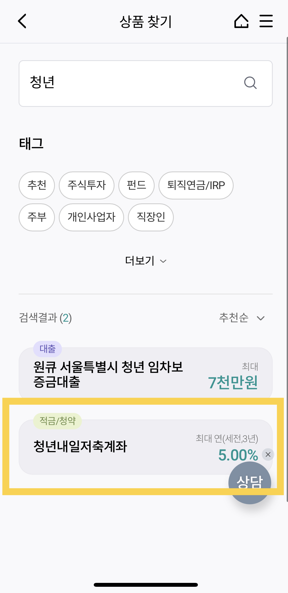 적금/청약 청년 내일 저축게좌 를 터치해줍니다.