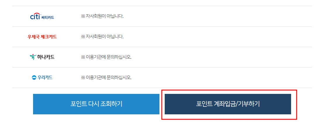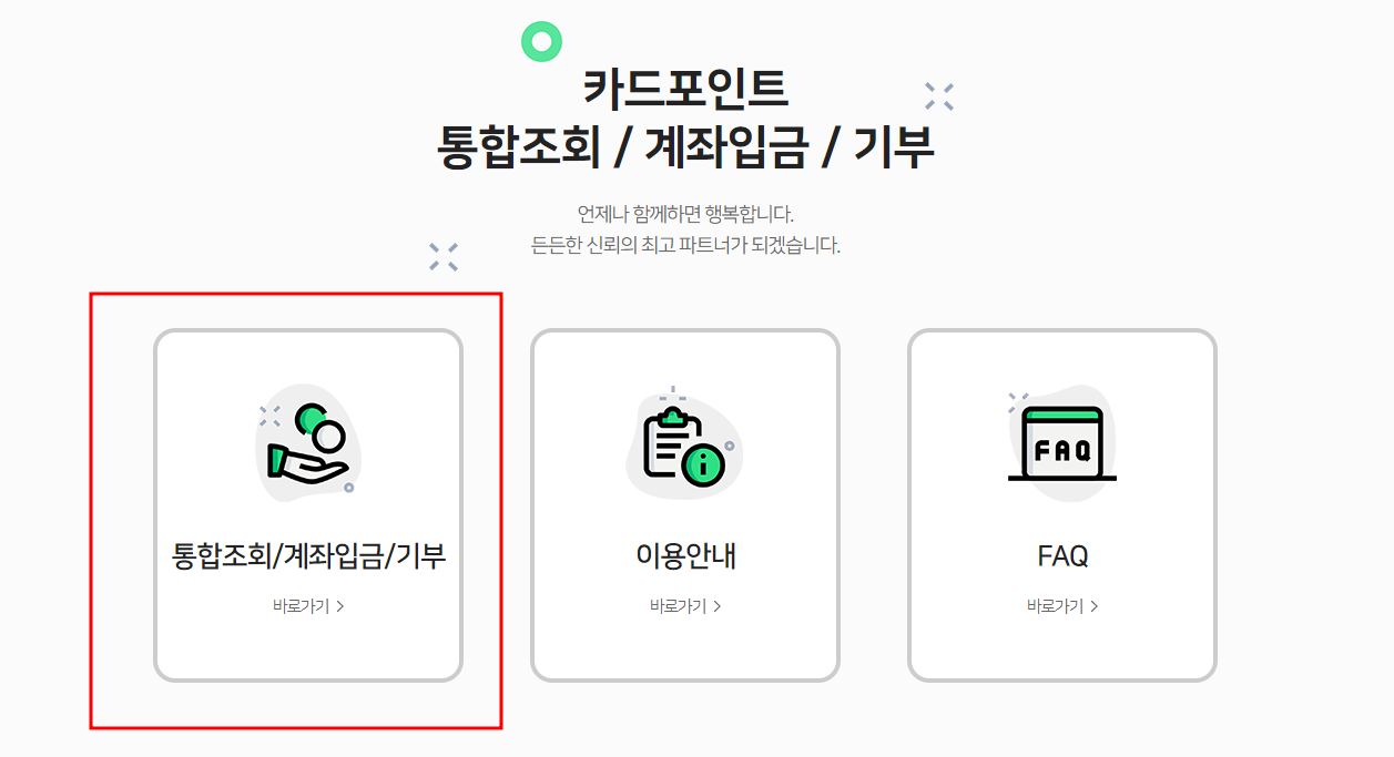 카드포인트통합조회 / 계좌입금 / 기부 언제나 함께하면 행복합니다. 든든한 신뢰의 최고 파트너가 되겠습니다.