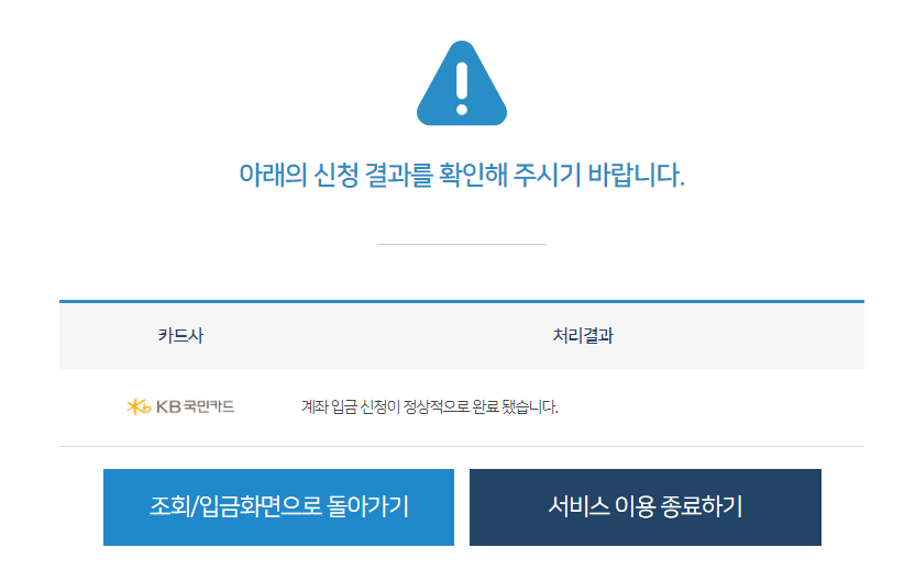 위 명단에 없는 카드사의 경우는 해당 카드사에 직접 계좌입금 신청을 해야 합니다.