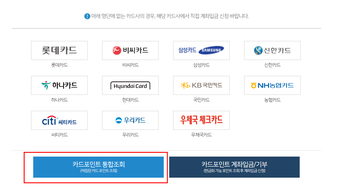 그래서 오늘은 흩어져 있는 카드 포인트를 통합 조회 하는 방법과 현금화 하는 방법에 대해