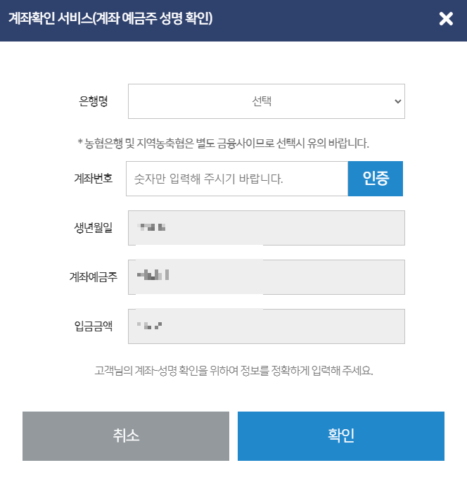계좌번호 인증이 완료 되면 확인을 눌러주세요.