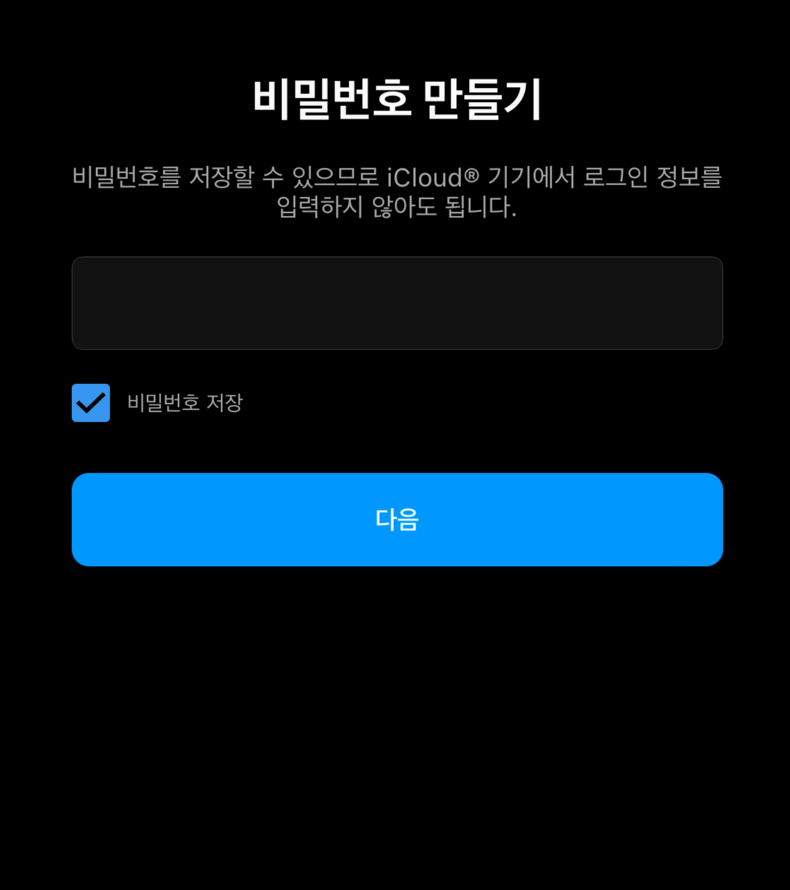 비밀번호를 설정하고 나서 다음 버튼 터치!!