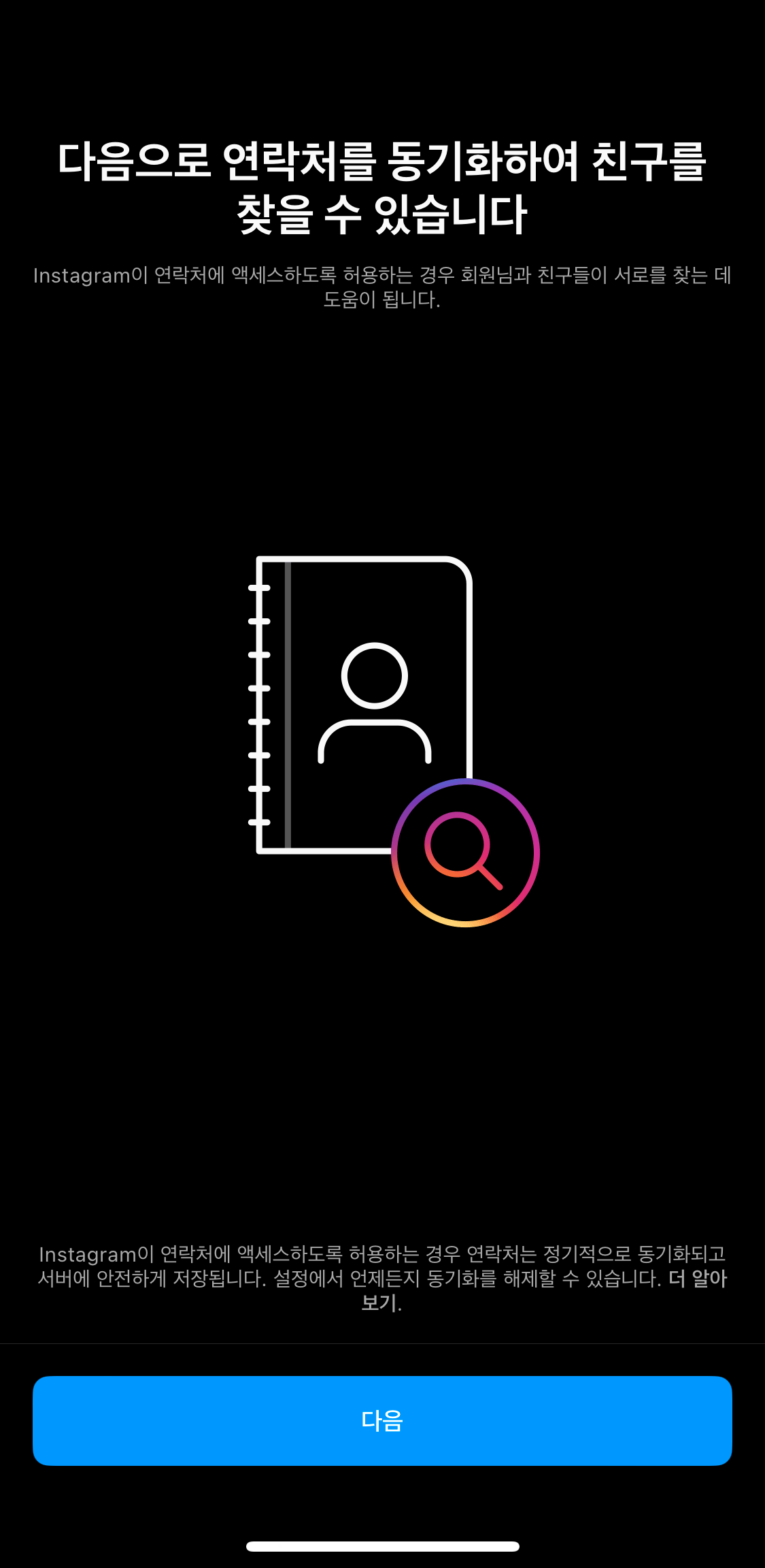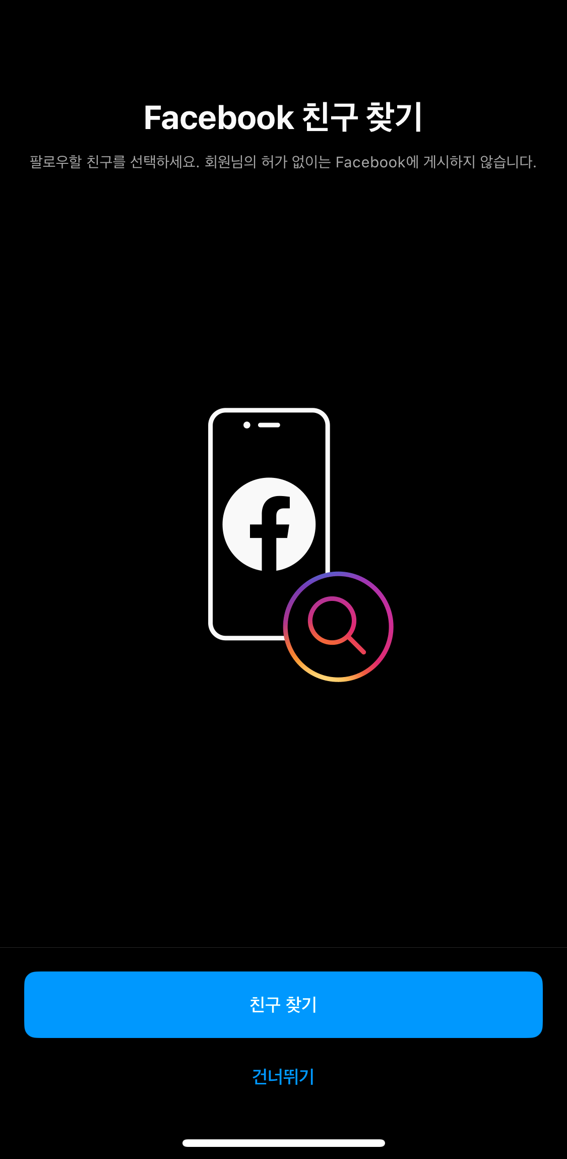 저는 연락처 동기화 및 facebook 친구찾기를 하지 않았기 때문에