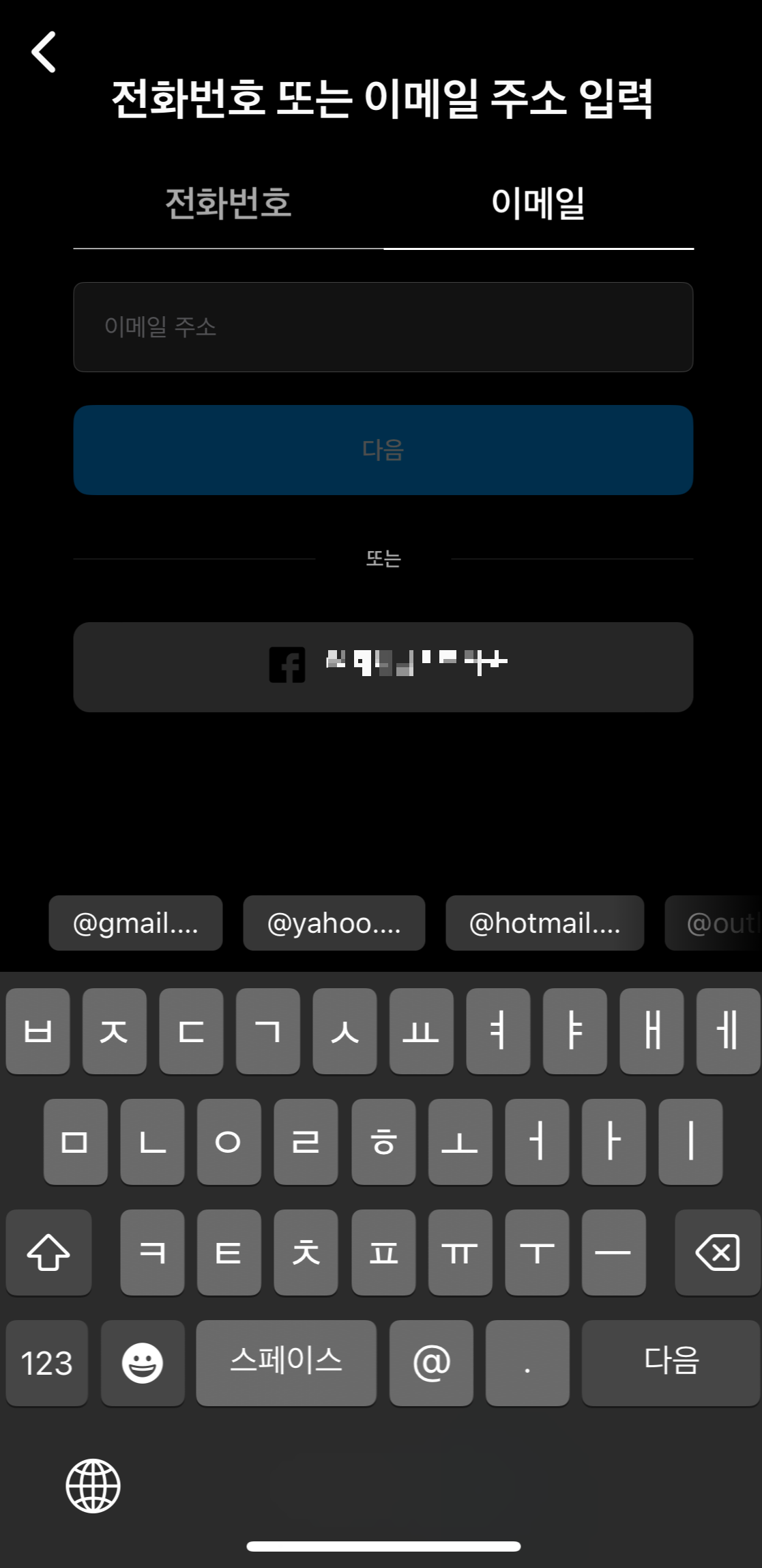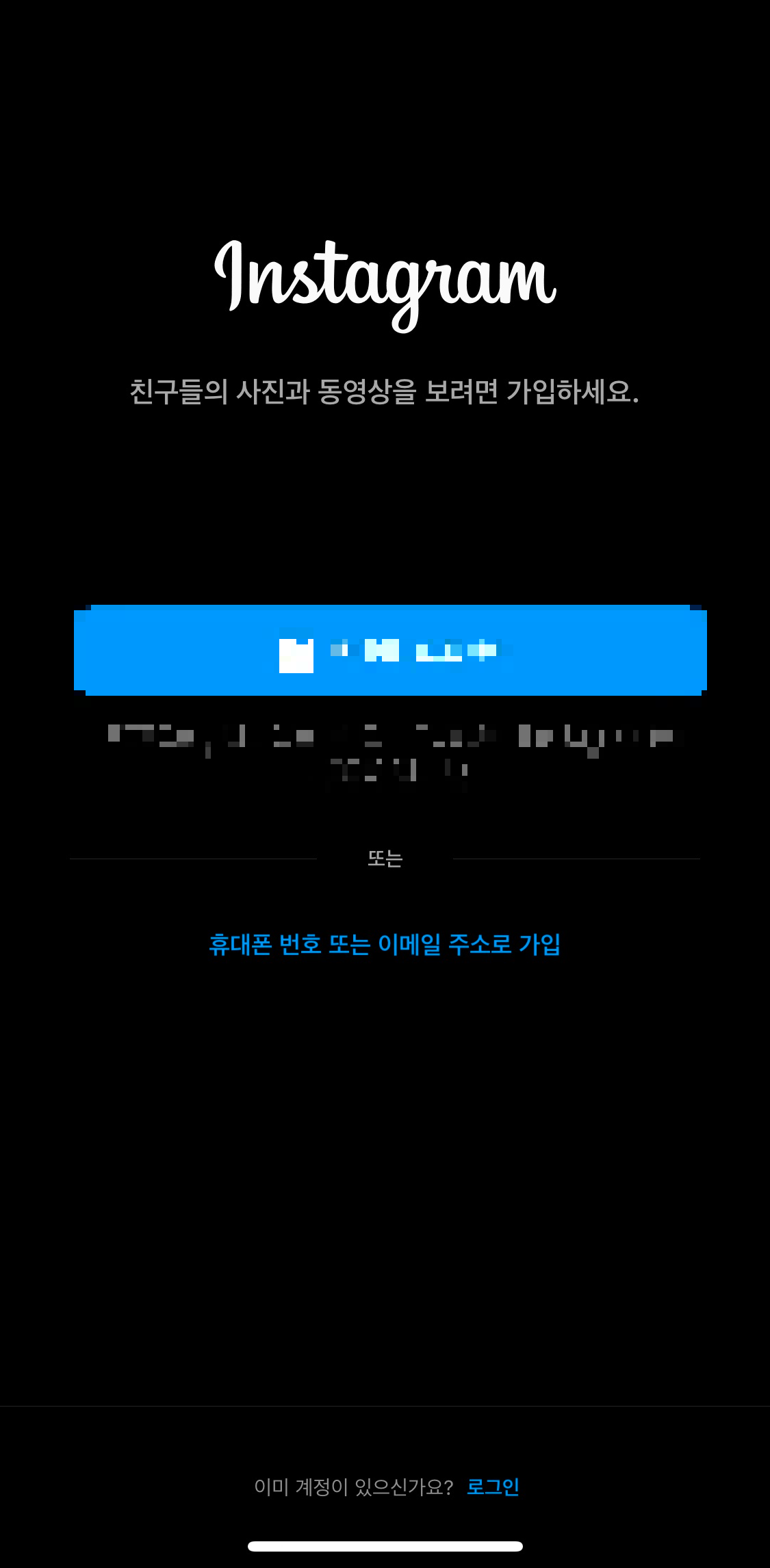 인스타그램은 보통 페이스북으로 로그인하기가 가능한데