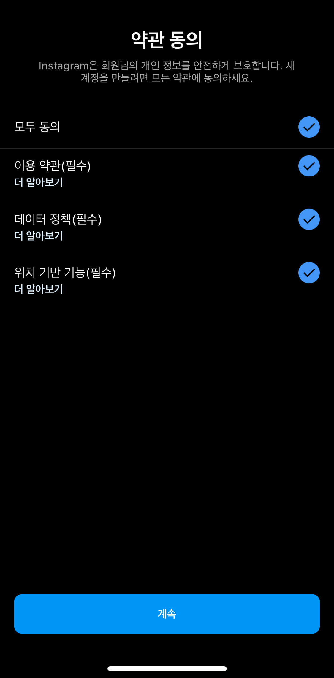 약관 동의를 해주시면 되는데 모두 다 필수이기 때문에