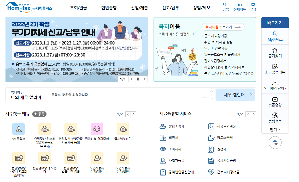 부가가치세 신고기간 : 23.1.1 ~1.27 06:00~24:00