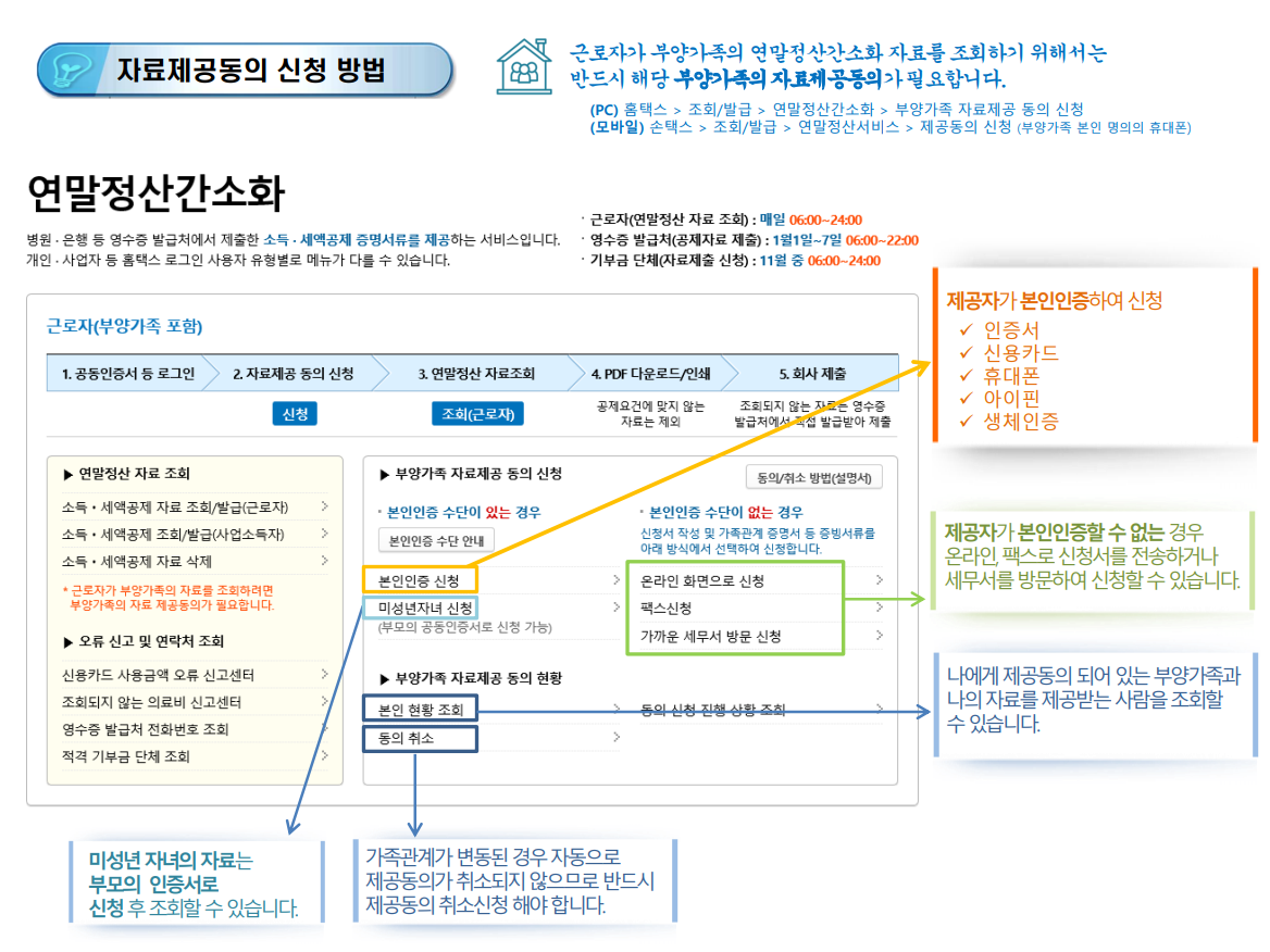 반드시 해당 부양가족의 자료 제공 동의가 필요합니다.