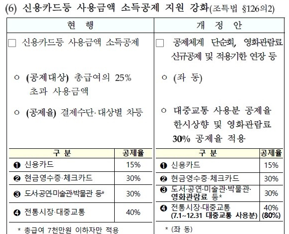 영화관람료 / 대중교통 사용분에 대해 개정되었습니다.