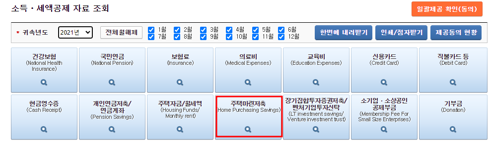 그 후에는 소득 세액 공제 자료 조회에서 주택마련저축 확인이 가능이 가능합니다.